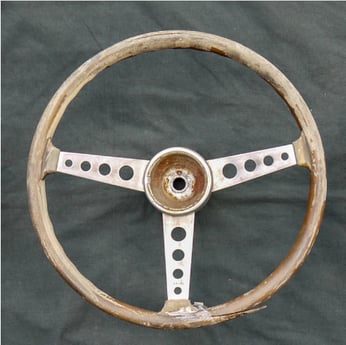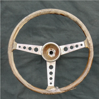 Das Fahrzeug stand über viele Jahre im Freien und auch das Lenkrad war der Witterung schutzlos ausgeliefert.